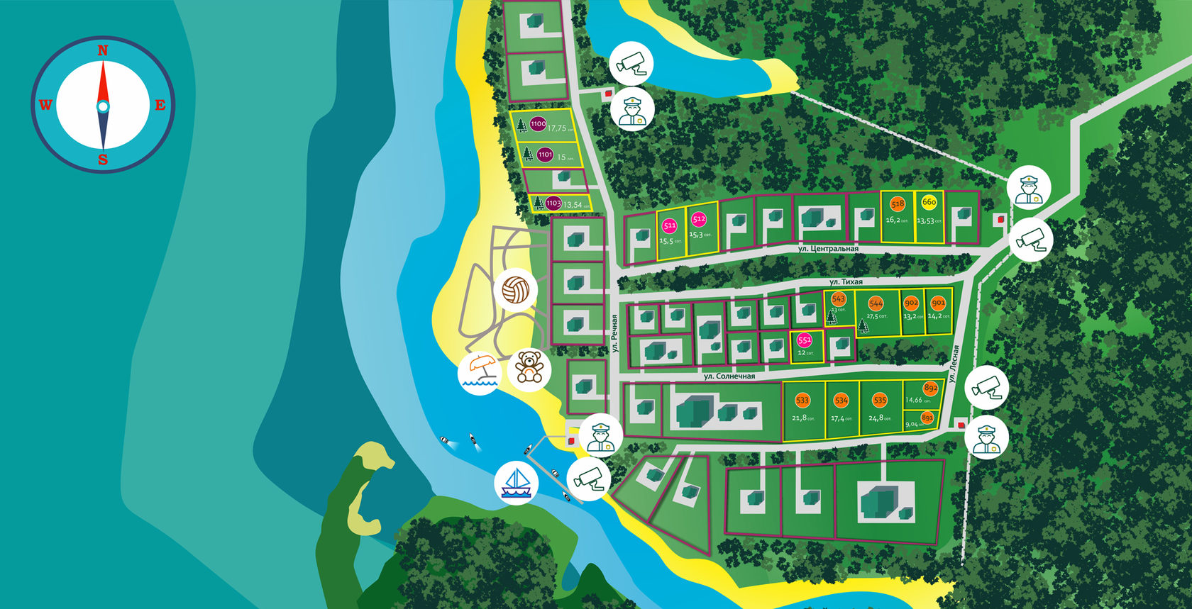 Территория резиденции охраняется четырьмя круглогодичными охранными пунктами, оборудованными единой системой видеонаблюдения